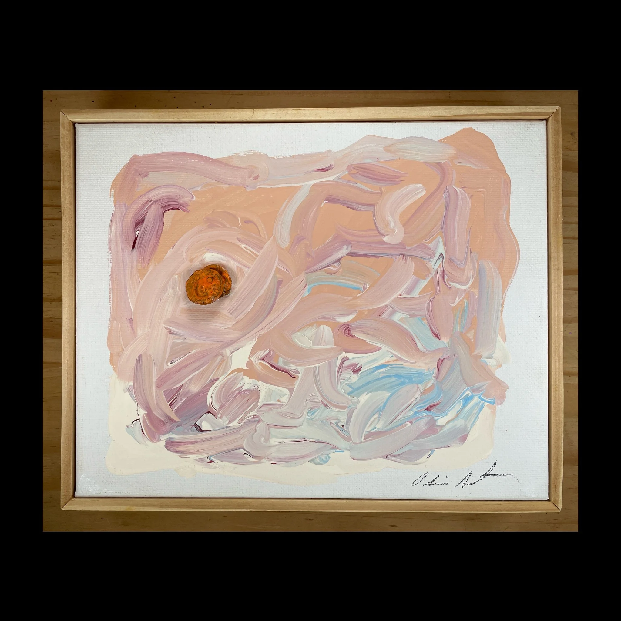 Image 1 of 2 Image 2 of 2 Eclipse (2022) $200.00 Acrylic and melted coins on canvas.Framed size: 10.5” x 8.5” Add To Cart Added! Acrylic and melted coins on canvas.Framed size: 10.5” x 8.5”